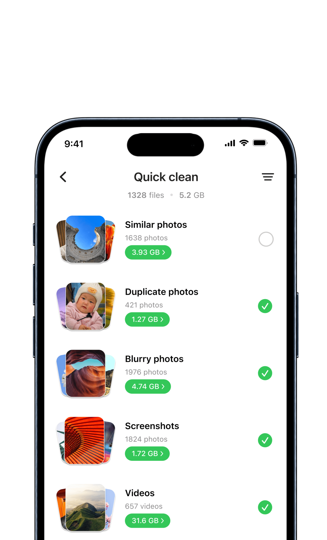 Declutter with gestures you already know — left to delete, right to keep. Fast, simple, and stress-free.