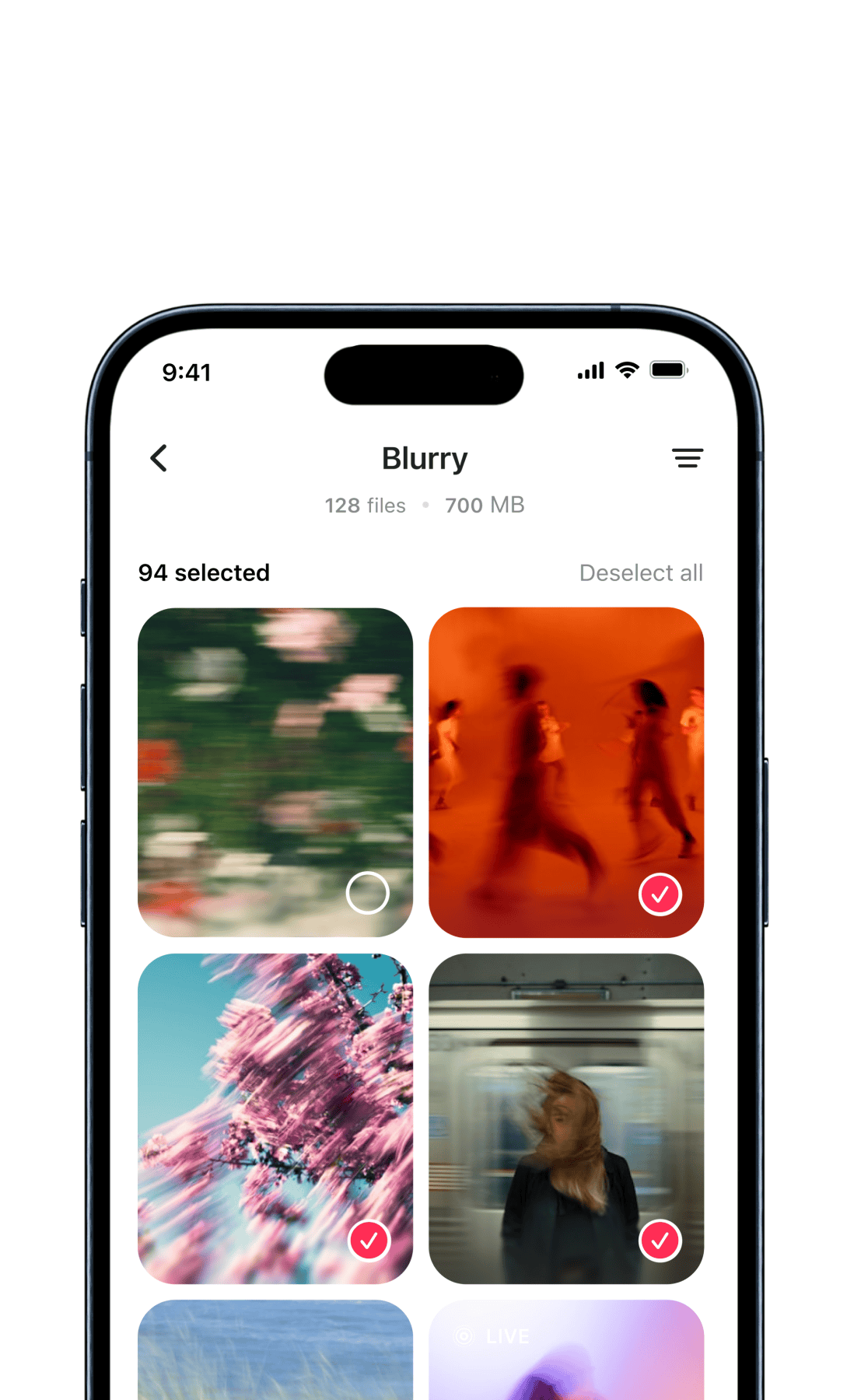 Out-of-focus photos don’t need to take up space. Savespace highlights them so you can clear them in seconds.